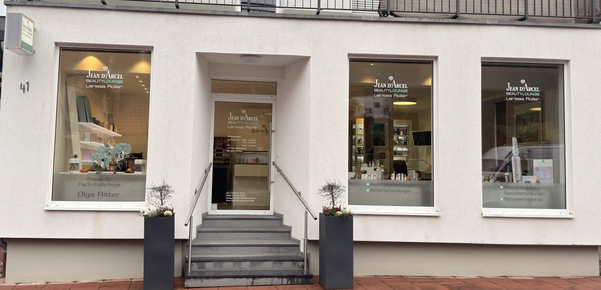 Willkommen in der JEAN D’ARCEL Beautylounge – Professionelle Kosmetik in stilvoller Atmosphäre Das Konzept der JEAN D’ARCEL Beautylounges wurde entwickelt, um Ihnen hochwertige kosmetische Behandlungen in einem modernen, eleganten Ambiente zu bieten. Mit der bewährten Expertise der Marke JEAN D’ARCEL verbinden wir professionelle Pflege, wirkungsvolle Produkte und einen Service, der Sie rundum verwöhnt. Tauchen Sie ein in eine Welt, in der Ihre Schönheit im Mittelpunkt steht – mit Behandlungen, die genau auf Ihre Bedürfnisse abgestimmt sind.